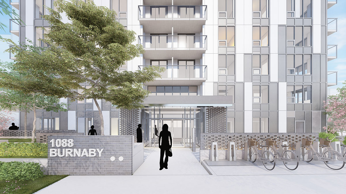 The proposal for development at 1088 Burnaby Street provides 300 purpose-built rental homes, including 20% below-market rental suites in the West End of Vancouver. Located on the sloping corner of Thurlow and Burnaby Streets, the site is well positioned to take its place within the vibrant community that provides proximity to Downtown, the Seawall, numerous recreational, shopping, and cultural resources, all within walking and cycling distance of the site.